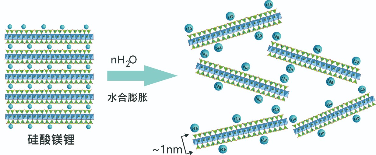 鋰皂石(硅酸鎂鋰)是一種人工合成的三八面體層狀膠體材料,屬蒙脫石、蛭石族中的蛭石亞族,一般為灰白色,質地細膩,硬度小而具滑感。鋰皂石加入水中,能很快膨脹,形成包含大量水網絡結構的凝膠,具有較好的觸變性、分散性、懸浮性和增稠性。因此,鋰皂石可做為多種涂料、化妝品、醫藥、增稠劑、分散劑、懸浮劑、煙霧劑、乳膠穩定劑、橡膠膠乳等使用。在水體系中具極強的成膠性能,在水分散體系中,硅酸鎂鋰礦物微細顆粒的晶面和晶結合,形成包含大量水分子的觸變性凝膠,其成膠能力表現在較低的固含量下,能形成較高粘度的膠體。具有優異的觸變性、分散性、懸浮性和增稠性。本品為白色,無毒、無味,無刺激性,具有納米特性。