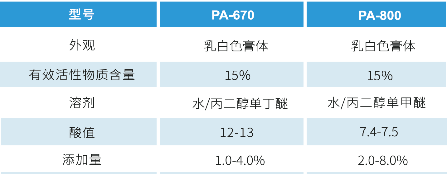 適用于各種工業和民用的水性涂料及印刷油墨, 其中 PA-670特別適用于乳液涂料和水乳膠型涂料。