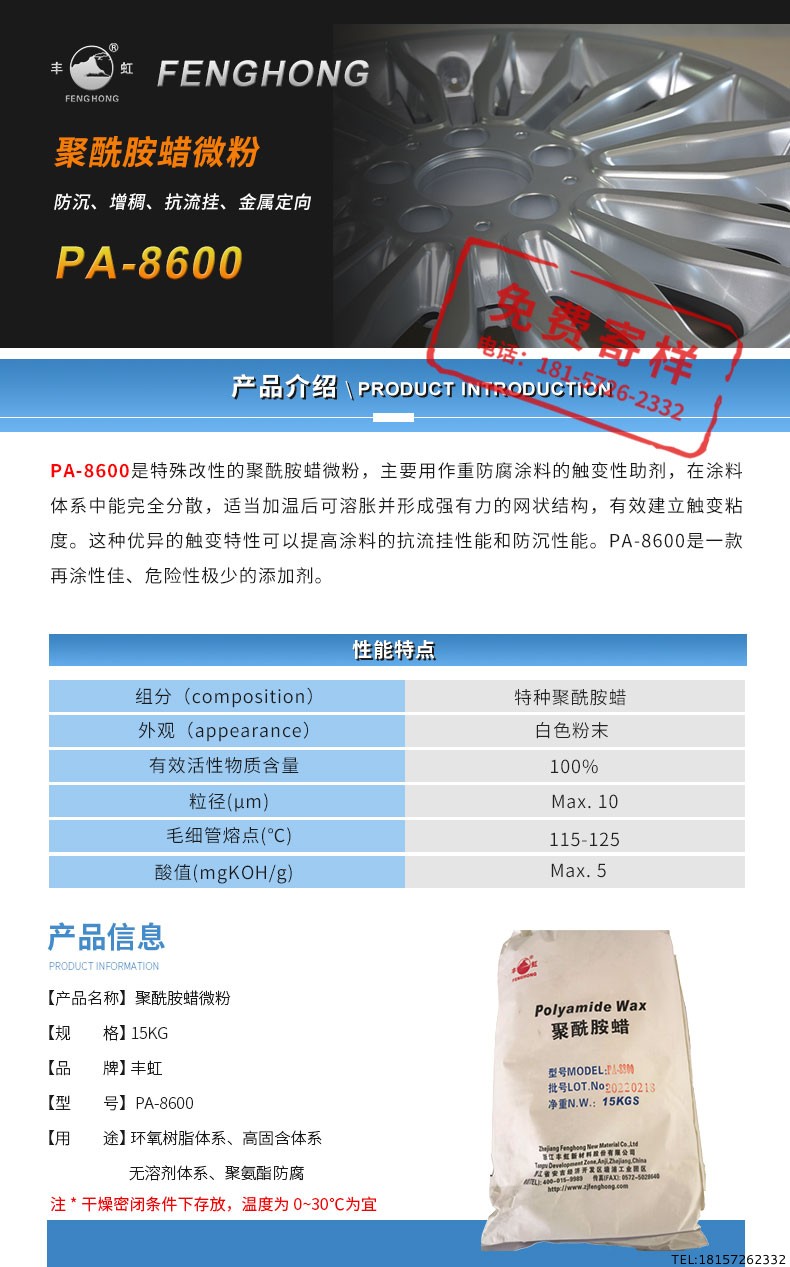 PA-8600是特殊改性的聚酰胺蠟微粉,主要用作重防腐涂料的